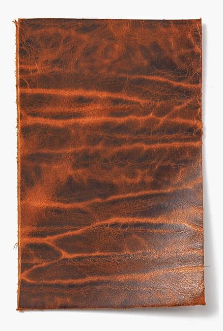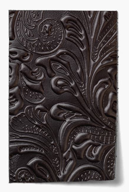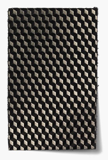 The sharp angular lines of the embossing give this artisanal leather a distinctly modern feel.