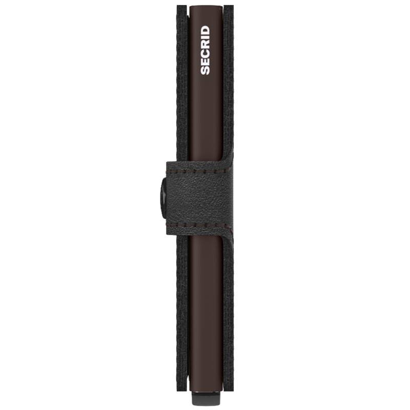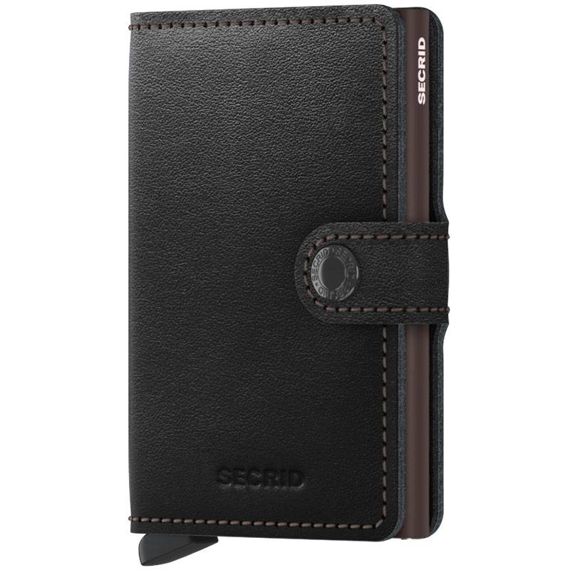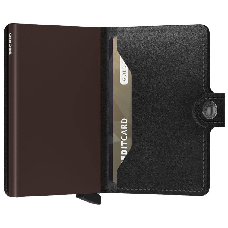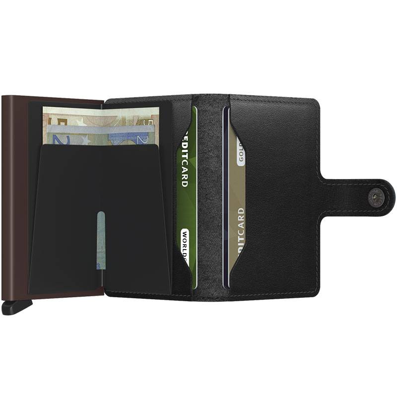 Secrid Miniwallet Original Black med bruna sömmar och brun korthållare.