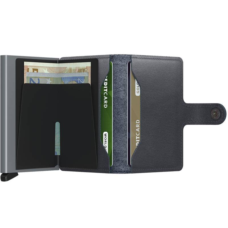 Kortskyddet är hjärtat i SECRID wallet. Genom att skjuta en liten spak åt sidan, förs dina kort ut ur kortskyddet i en överlappande sekvens. Detta kan du göra utan att ens öppna övriga delar av din plånbok och du hittar snabbt det kort du vill använda. Du plockar endast fram ett kort när du ska betala och så länge de andra finns kvar i aluminiumskalet, kan obehörig utrustning inte läsa av korten. Risken minimeras på detta vis ytterligare.
