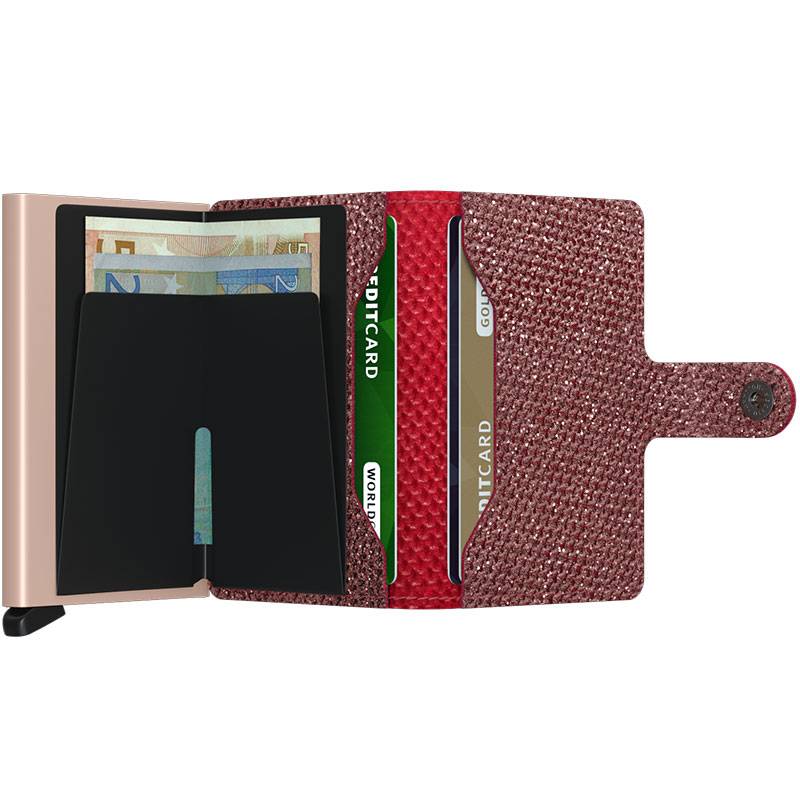 Kortskyddet är hjärtat i SECRID wallet. Genom att skjuta en liten spak åt sidan, förs dina kort ut ur kortskyddet i en överlappande sekvens. Detta kan du göra utan att ens öppna övriga delar av din plånbok och du hittar snabbt det kort du vill använda. Du plockar endast fram ett kort när du ska betala och så länge de andra finns kvar i aluminiumskalet, kan obehörig utrustning inte läsa av korten. Risken minimeras på detta vis ytterligare.
