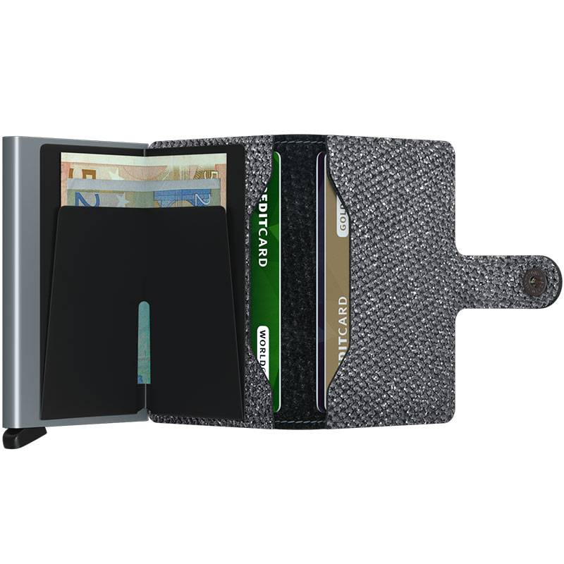 Kortskyddet är hjärtat i SECRID wallet. Genom att skjuta en liten spak åt sidan, förs dina kort ut ur kortskyddet i en överlappande sekvens. Detta kan du göra utan att ens öppna övriga delar av din plånbok och du hittar snabbt det kort du vill använda. Du plockar endast fram ett kort när du ska betala och så länge de andra finns kvar i aluminiumskalet, kan obehörig utrustning inte läsa av korten. Risken minimeras på detta vis ytterligare.