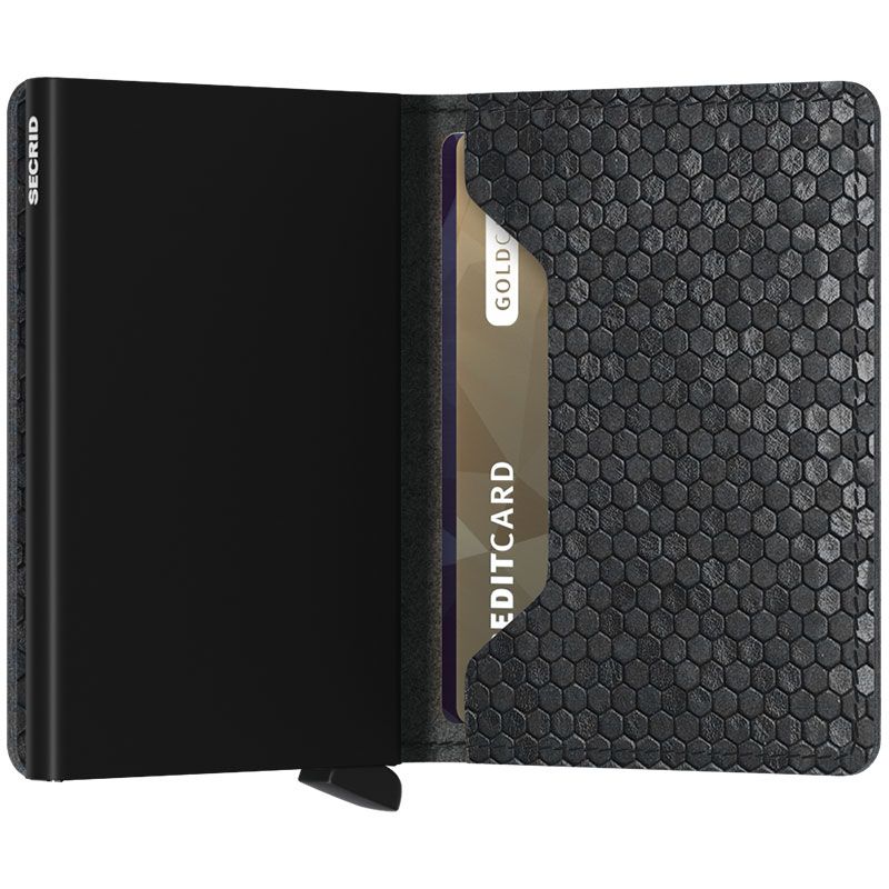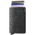 Kortskyddet är hjärtat i SECRID wallet. Genom att skjuta en liten spak åt sidan, förs dina kort ut ur kortskyddet i en överlappande sekvens. Detta kan du göra utan att ens öppna övriga delar av din plånbok och du hittar snabbt det kort du vill använda. Du plockar endast fram ett kort när du ska betala och så länge de andra finns kvar i aluminiumskalet, kan obehörig utrustning inte läsa av korten. Risken minimeras på detta vis ytterligare.