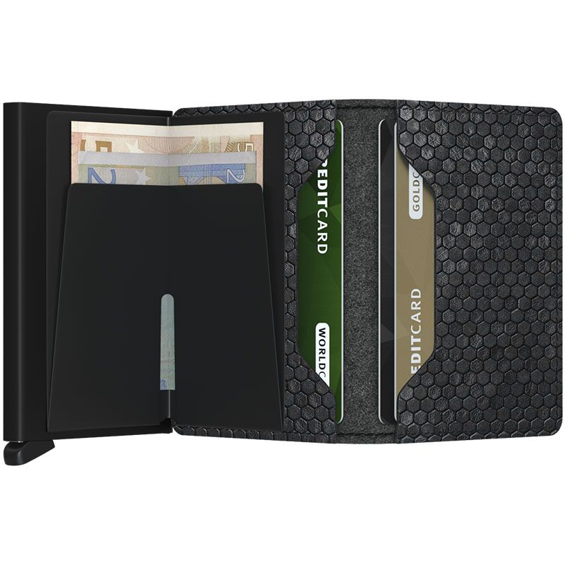 Secrid finns i lite olika utföranden, de populäraste modellerna har en ”läderjacka” och i den finner du plats för några andra kort utan t ex mikrochip, mynt och ett smart sedelfack som även kan användas till kvitton eller andra små notisar.