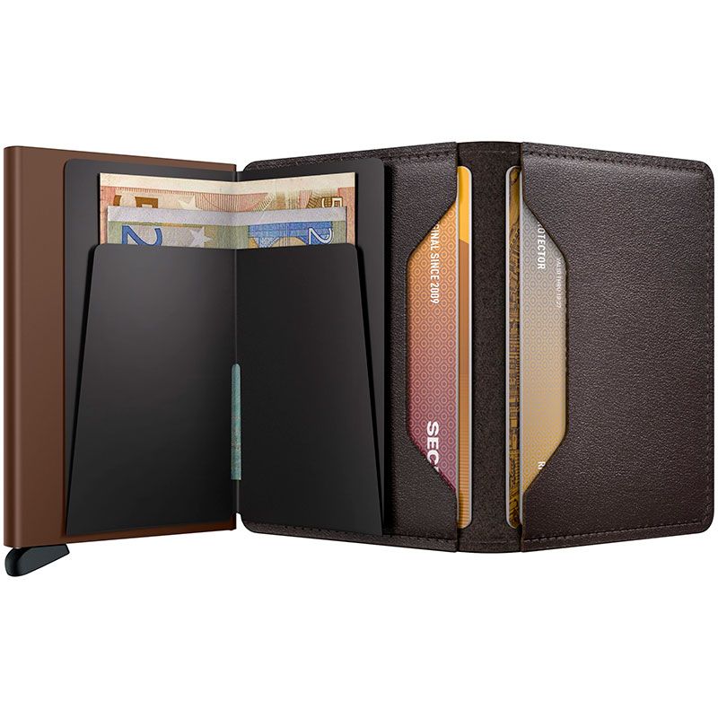 Secrid finns i lite olika utföranden, de populäraste modellerna har en ”läderjacka” och i den finner du plats för några andra kort utan t ex mikrochip, mynt och ett smart sedelfack som även kan användas till kvitton eller andra små notisar.