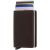 Kortskyddet är hjärtat i SECRID wallet. Genom att skjuta en liten spak åt sidan, förs dina kort ut ur kortskyddet i en överlappande sekvens. Detta kan du göra utan att ens öppna övriga delar av din plånbok och du hittar snabbt det kort du vill använda. Du plockar endast fram ett kort när du ska betala och så länge de andra finns kvar i aluminiumskalet, kan obehörig utrustning inte läsa av korten. Risken minimeras på detta vis ytterligare.