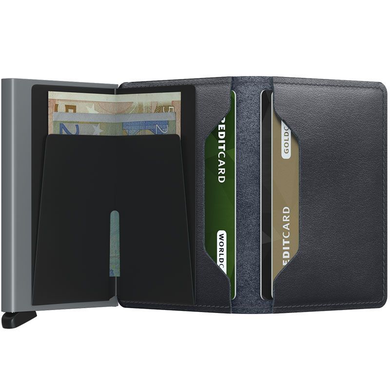 Secrid finns i lite olika utföranden, de populäraste modellerna har en ”läderjacka” och i den finner du plats för några andra kort utan t ex mikrochip, mynt och ett smart sedelfack som även kan användas till kvitton eller andra små notisar.