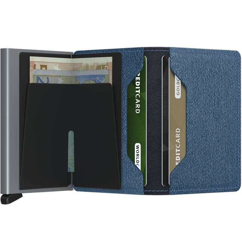 Secrid finns i lite olika utföranden, de populäraste modellerna har en ”läderjacka” och i den finner du plats för några andra kort utan t ex mikrochip, mynt och ett smart sedelfack som även kan användas till kvitton eller andra små notisar.