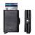 Kortskyddet är hjärtat i SECRID wallet. Genom att skjuta en liten spak åt sidan, förs dina kort ut ur kortskyddet i en överlappande sekvens. Detta kan du göra utan att ens öppna övriga delar av din plånbok och du hittar snabbt det kort du vill använda. Du plockar endast fram ett kort när du ska betala och så länge de andra finns kvar i aluminiumskalet, kan obehörig utrustning inte läsa av korten. Risken minimeras på detta vis ytterligare.