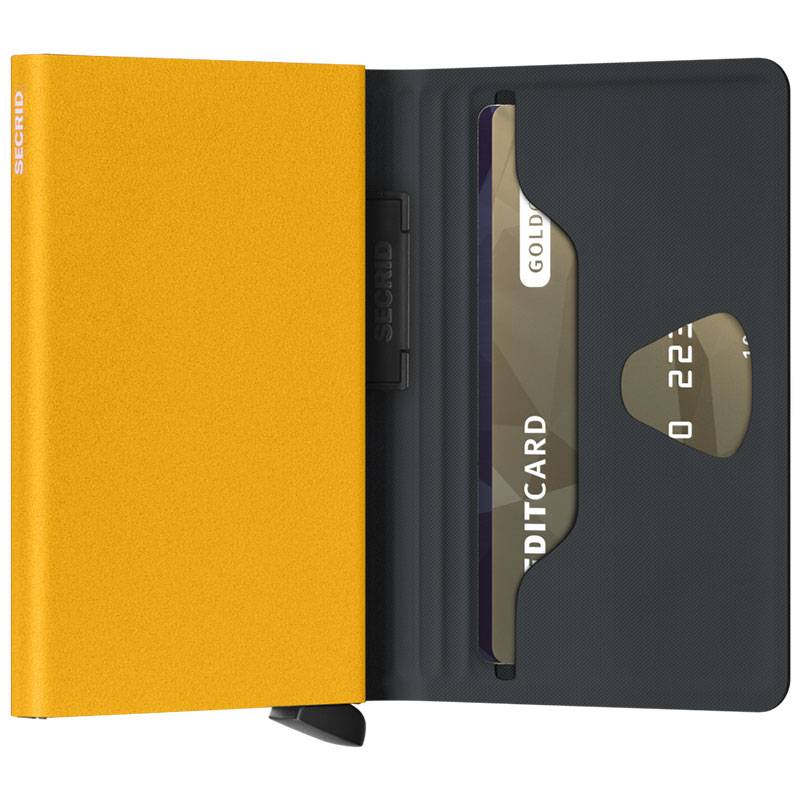 Kortskyddet är hjärtat i SECRID wallet. Genom att skjuta en liten spak åt sidan, förs dina kort ut ur kortskyddet i en överlappande sekvens. Detta kan du göra utan att ens öppna övriga delar av din plånbok och du hittar snabbt det kort du vill använda. Du plockar endast fram ett kort när du ska betala och så länge de andra finns kvar i aluminiumskalet, kan obehörig utrustning inte läsa av korten. Risken minimeras på detta vis ytterligare.