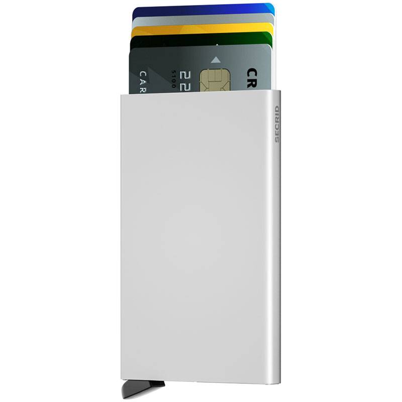 Den ultratunna Cardprotectorn, tillverkad av aluminium, skyddar dina kort från att böjas och brytas. Dessutom, förhindrar den trådlös identitetsstöld genom att fungera som en brandvägg för dina RFID och NFC-kort. Cardprotectorns särdrag är ett innovativt skjutsystem: med bara ett enkelt klick skjuts alla dina kort ut gradvis, färdiga att använda. Beroende på om korten är präglade eller inte, kan Cardprotectorn förvara mellan fyra och sex kort. Det är en enastående kombination av design och ingenjörskonst som har tilldelats prestigefyllda priser, bland annat Red Dot Design Award.
