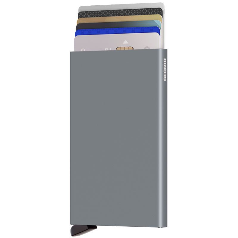 Den ultratunna Cardprotectorn, tillverkad av aluminium, skyddar dina kort från att böjas och brytas. Dessutom, förhindrar den trådlös identitetsstöld genom att fungera som en brandvägg för dina RFID och NFC-kort. Cardprotectorns särdrag är ett innovativt skjutsystem: med bara ett enkelt klick skjuts alla dina kort ut gradvis, färdiga att använda. Beroende på om korten är präglade eller inte, kan Cardprotectorn förvara mellan fyra och sex kort. Det är en enastående kombination av design och ingenjörskonst som har tilldelats prestigefyllda priser, bland annat Red Dot Design Award.