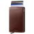 Kortskyddet är hjärtat i SECRID wallet. Genom att skjuta en liten spak åt sidan, förs dina kort ut ur kortskyddet i en överlappande sekvens. Detta kan du göra utan att ens öppna övriga delar av din plånbok och du hittar snabbt det kort du vill använda. Du plockar endast fram ett kort när du ska betala och så länge de andra finns kvar i aluminiumskalet, kan obehörig utrustning inte läsa av korten. Risken minimeras på detta vis ytterligare.
