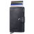 Kortskyddet är hjärtat i SECRID wallet. Genom att skjuta en liten spak åt sidan, förs dina kort ut ur kortskyddet i en överlappande sekvens. Detta kan du göra utan att ens öppna övriga delar av din plånbok och du hittar snabbt det kort du vill använda. Du plockar endast fram ett kort när du ska betala och så länge de andra finns kvar i aluminiumskalet, kan obehörig utrustning inte läsa av korten. Risken minimeras på detta vis ytterligare.
