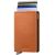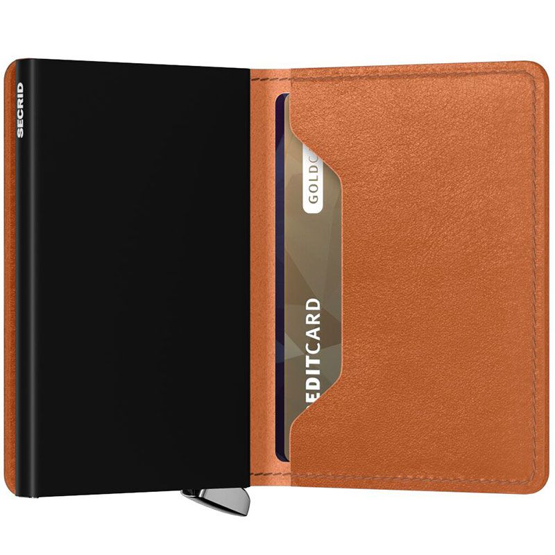 Kortskyddet är hjärtat i SECRID wallet. Genom att skjuta en liten spak åt sidan, förs dina kort ut ur kortskyddet i en överlappande sekvens. Detta kan du göra utan att ens öppna övriga delar av din plånbok och du hittar snabbt det kort du vill använda. Du plockar endast fram ett kort när du ska betala och så länge de andra finns kvar i aluminiumskalet, kan obehörig utrustning inte läsa av korten. Risken minimeras på detta vis ytterligare.