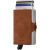 Kortskyddet är hjärtat i SECRID wallet. Genom att skjuta en liten spak åt sidan, förs dina kort ut ur kortskyddet i en överlappande sekvens. Detta kan du göra utan att ens öppna övriga delar av din plånbok och du hittar snabbt det kort du vill använda. Du plockar endast fram ett kort när du ska betala och så länge de andra finns kvar i aluminiumskalet, kan obehörig utrustning inte läsa av korten. Risken minimeras på detta vis ytterligare.