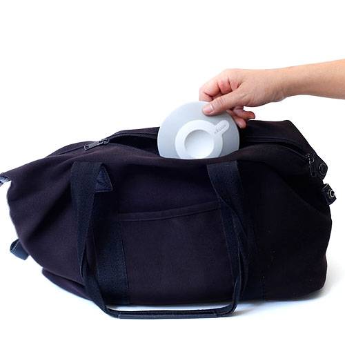Spegelns kompakta design och diskreta färger i ljusgrått och vitt gör att den både passar till vardagsbruk i badrummet, som sminkspegel i handväskan eller på resan.