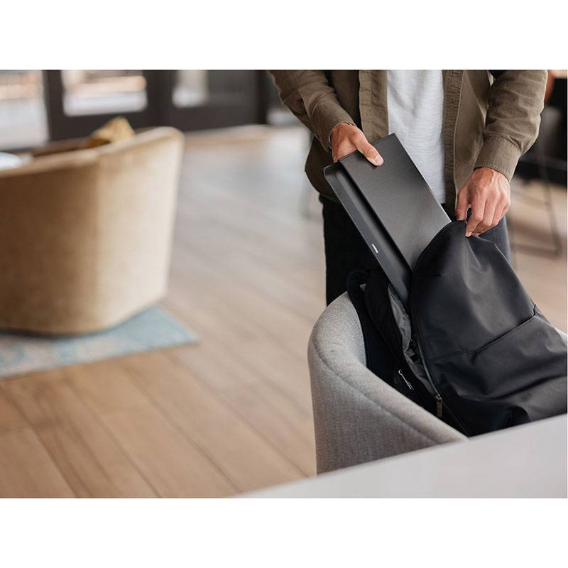 Gör valfri plats till en välbekant arbetsyta med denna hybrid som du kan förvandla från laptopväska till ett skrivbordsunderlägg på ett par sekunder.