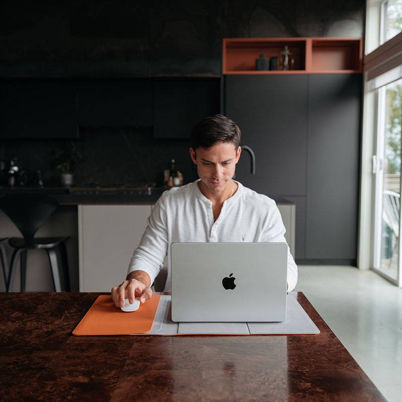 Orbitkey Hybrid Laptop Sleeve Terracotta 15-16" som förvandlas till ett skrivbordunderlägg