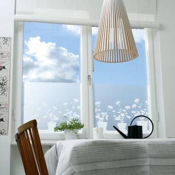 Siluett Frost Fönsterfilm med mönster och nu även med endast en vit frostad yta. Det finns mönster med bl a pelargoner, orkidéer, stilleben och moln samt nya Patchwork. Fönsterfilmen sätts upp helt utan klister - den fastnar statiskt på rutan och om du någon gång vill flytta den till ett annat fönster, går det alldeles utmärkt.