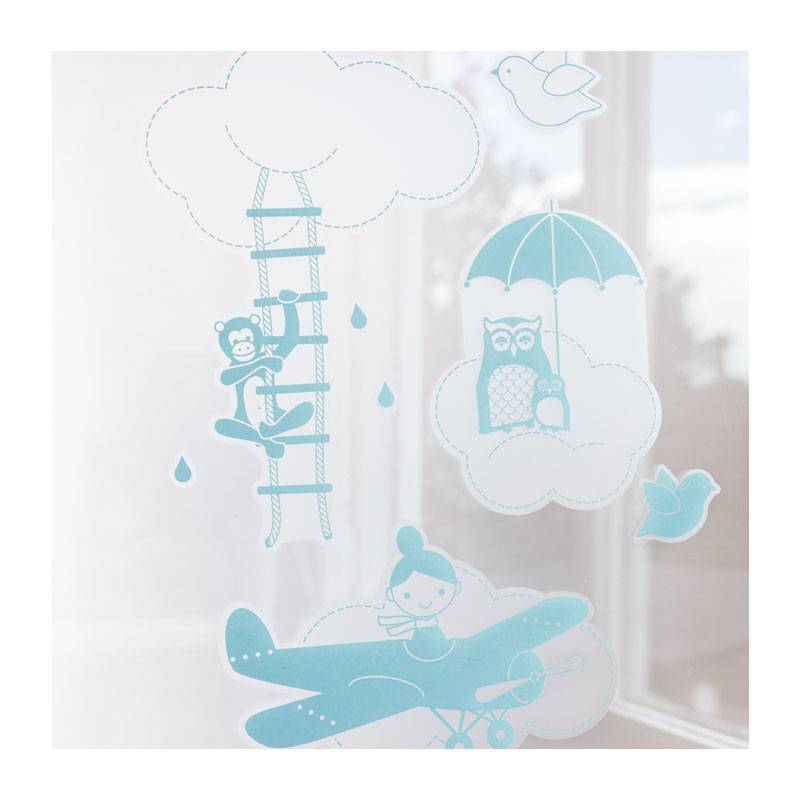 Med dessa stickers skapar du barnvänliga dekorationer på kakel, speglar, glasdörrar eller på utsidan av glasdörrar i duschar. Motiv av luftballong, flyplan, apa, kanin, barn.