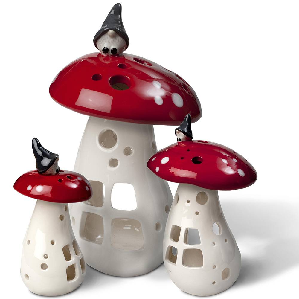 Dessa förtrollande svamplyktor sprider magiskt mys i varje vrå. De är fina att ställa var för sig eller flera tillsammans och de lyser lika fint med levande ljus som med en ljusslinga. Komplettera gärna med fler vättar.