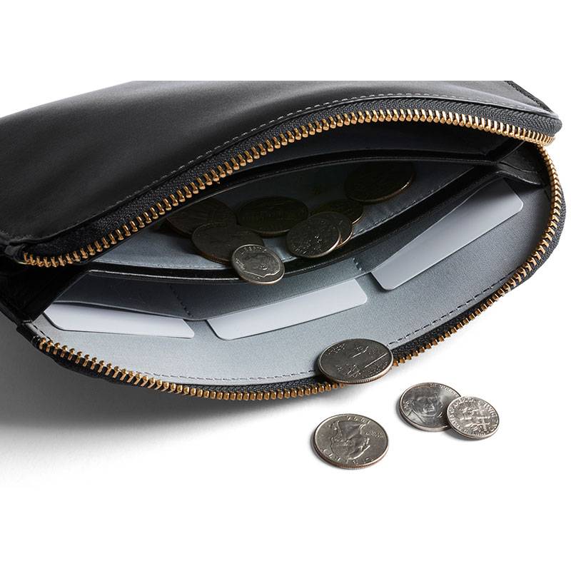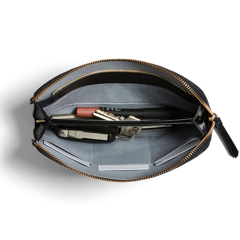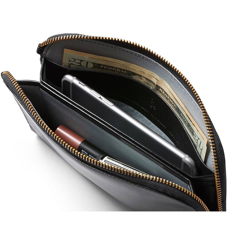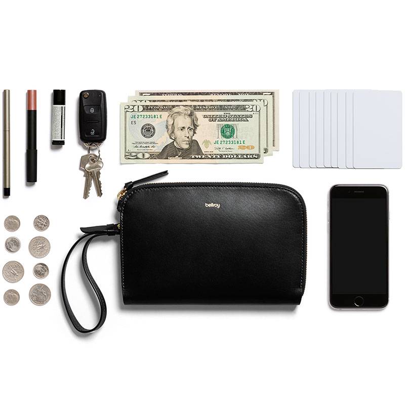 Rymmer 3-9+ kort, sedlar och mynt (bakom magnetlås), mobiltelefon och en hel del fler personliga accessoarer.