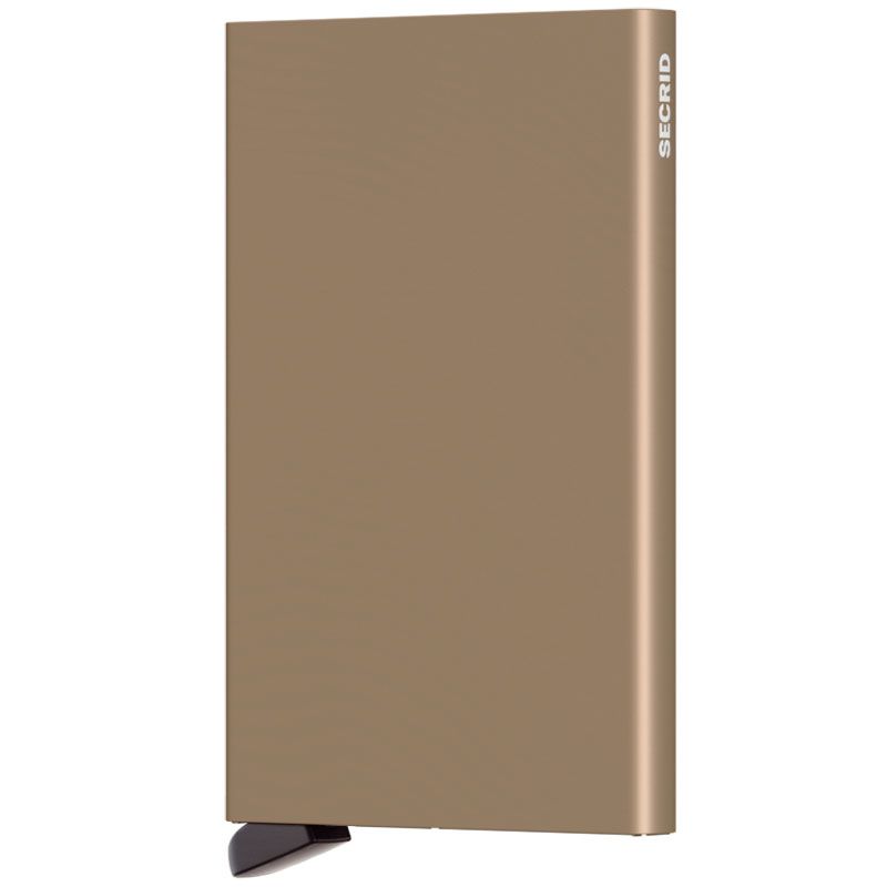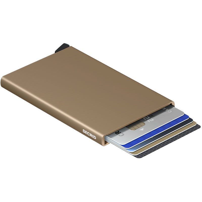 Den ultratunna Cardprotectorn, tillverkad av aluminium, skyddar dina kort från att böjas och brytas. Dessutom, förhindrar den trådlös identitetsstöld genom att fungera som en brandvägg för dina RFID och NFC-kort. Cardprotectorns särdrag är ett innovativt skjutsystem: med bara ett enkelt klick skjuts alla dina kort ut gradvis, färdiga att använda. Beroende på om korten är präglade eller inte, kan Cardprotectorn förvara mellan fyra och sex kort. Det är en enastående kombination av design och ingenjörskonst som har tilldelats prestigefyllda priser, bland annat Red Dot Design Award.