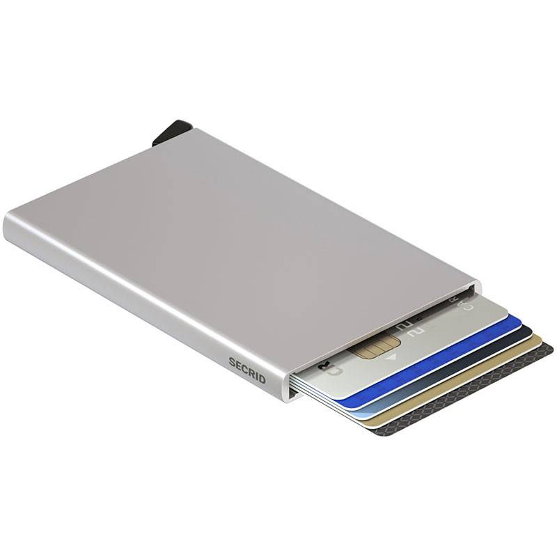 Den ultratunna Cardprotectorn, tillverkad av aluminium, skyddar dina kort från att böjas och brytas. Dessutom, förhindrar den trådlös identitetsstöld genom att fungera som en brandvägg för dina RFID och NFC-kort. Cardprotectorns särdrag är ett innovativt skjutsystem: med bara ett enkelt klick skjuts alla dina kort ut gradvis, färdiga att använda. Beroende på om korten är präglade eller inte, kan Cardprotectorn förvara mellan fyra och sex kort. Det är en enastående kombination av design och ingenjörskonst som har tilldelats prestigefyllda priser, bland annat Red Dot Design Award.