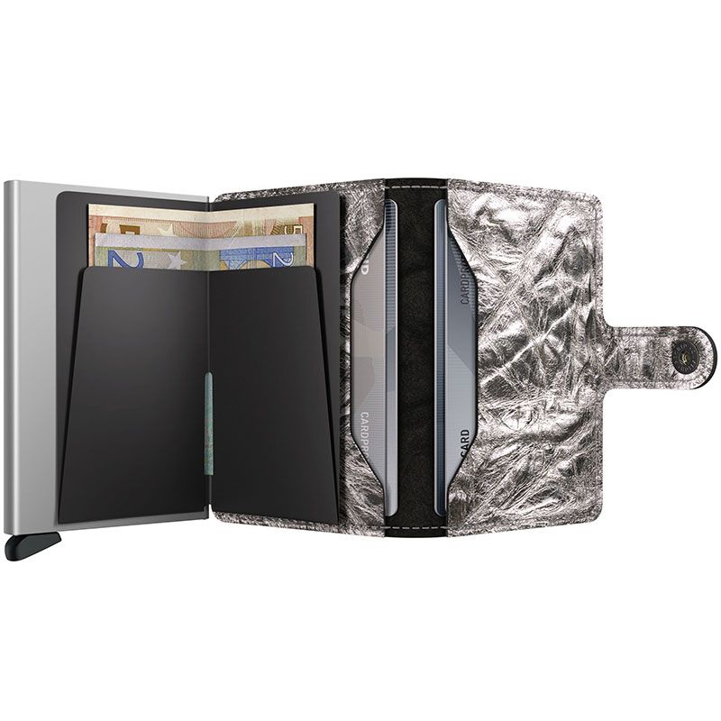 Kortskyddet är hjärtat i SECRID wallet. Genom att skjuta en liten spak åt sidan, förs dina kort ut ur kortskyddet i en överlappande sekvens. Detta kan du göra utan att ens öppna övriga delar av din plånbok och du hittar snabbt det kort du vill använda. Du plockar endast fram ett kort när du ska betala och så länge de andra finns kvar i aluminiumskalet, kan obehörig utrustning inte läsa av korten. Risken minimeras på detta vis ytterligare.