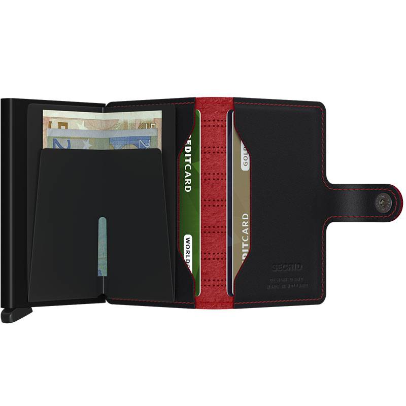 Kortskyddet är hjärtat i SECRID wallet. Genom att skjuta en liten spak åt sidan, förs dina kort ut ur kortskyddet i en överlappande sekvens. Detta kan du göra utan att ens öppna övriga delar av din plånbok och du hittar snabbt det kort du vill använda. Du plockar endast fram ett kort när du ska betala och så länge de andra finns kvar i aluminiumskalet, kan obehörig utrustning inte läsa av korten. Risken minimeras på detta vis ytterligare.