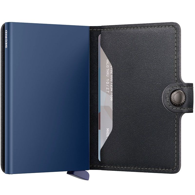 SECRID Miniwallet Original Black Navy - svart med blå sömmar och korthållare