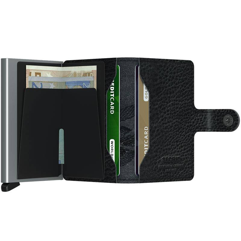 Kortskyddet är hjärtat i SECRID wallet. Genom att skjuta en liten spak åt sidan, förs dina kort ut ur kortskyddet i en överlappande sekvens. Detta kan du göra utan att ens öppna övriga delar av din plånbok och du hittar snabbt det kort du vill använda. Du plockar endast fram ett kort när du ska betala och så länge de andra finns kvar i aluminiumskalet, kan obehörig utrustning inte läsa av korten. Risken minimeras på detta vis ytterligare.