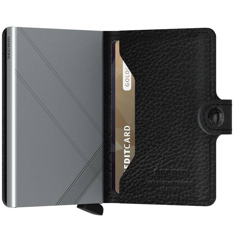 Secrid Miniwallet Stitch Veg Linea Black - med lasergraverade linjer i korthållaren