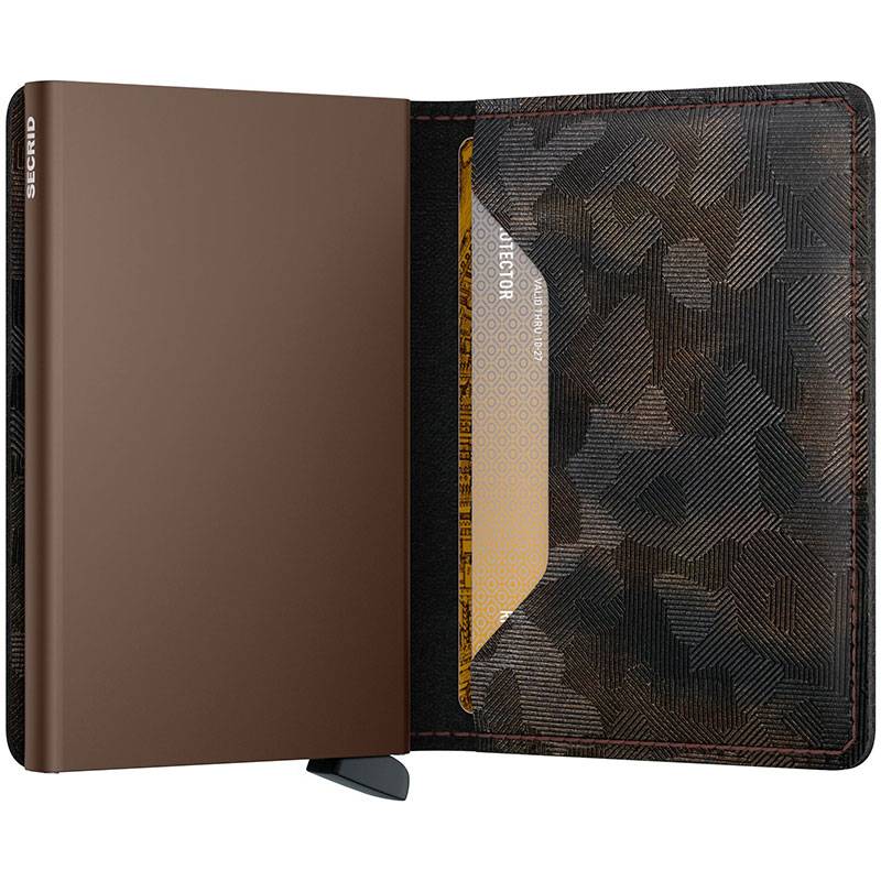 Kortskyddet är hjärtat i SECRID wallet. Genom att skjuta en liten spak åt sidan, förs dina kort ut ur kortskyddet i en överlappande sekvens. Detta kan du göra utan att ens öppna övriga delar av din plånbok och du hittar snabbt det kort du vill använda. Du plockar endast fram ett kort när du ska betala och så länge de andra finns kvar i aluminiumskalet, kan obehörig utrustning inte läsa av korten. Risken minimeras på detta vis ytterligare.