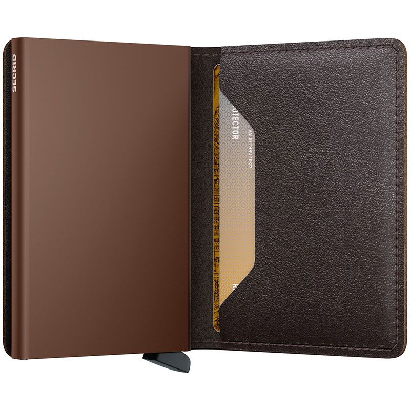 Kortskyddet är hjärtat i SECRID wallet. Genom att skjuta en liten spak åt sidan, förs dina kort ut ur kortskyddet i en överlappande sekvens. Detta kan du göra utan att ens öppna övriga delar av din plånbok och du hittar snabbt det kort du vill använda. Du plockar endast fram ett kort när du ska betala och så länge de andra finns kvar i aluminiumskalet, kan obehörig utrustning inte läsa av korten. Risken minimeras på detta vis ytterligare.