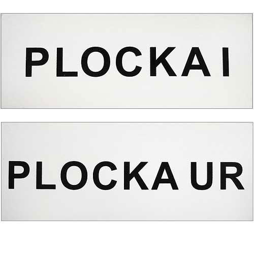 PLOCKA I/PLOCKA UR - svart text, vit bakgrund