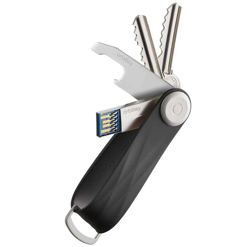 Du kan lagra mellan 2-7 nycklar i den praktiska nyckelhållaren. Du kan även komplettera Orbitkey med ett passande USB-3-minne och ett s.k. Multi-Tool som fungerar som skruvmejsel, kapsylöppnare, mutternyckel, m.m. (Säljs separat.) Levereras med den smarta "D-ring" som gör att du kan fästa nyckelringen vid andra föremål.