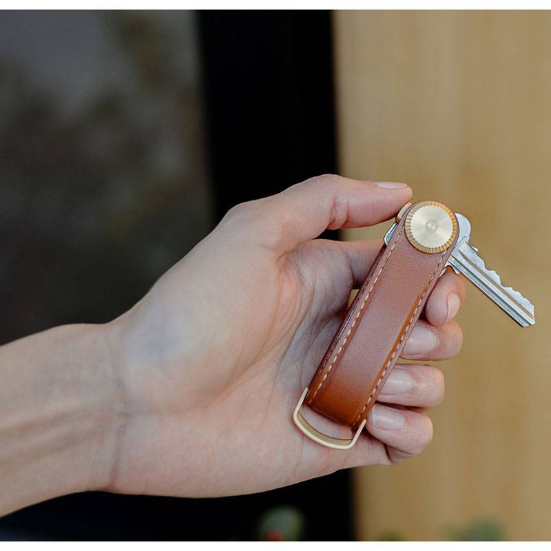 En mycket elegant och praktisk nyckelring från Orbitkey, tillverkad av noggrant utvalt genuint läder och delikata metalldetaljer. Kontrasterande söm.