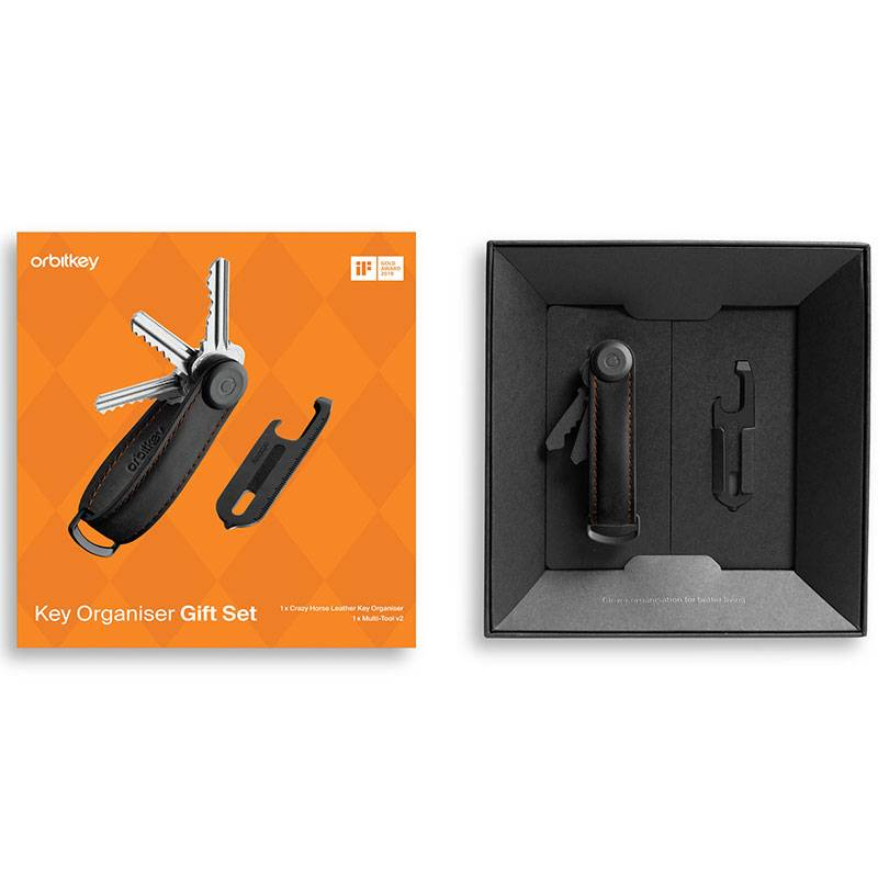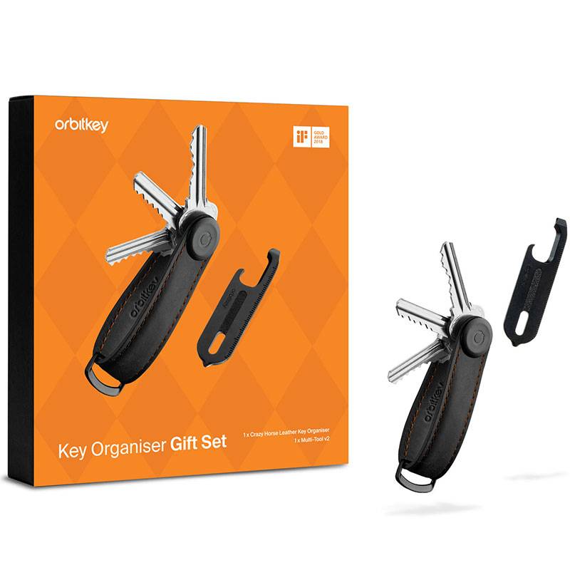 Orbitkey Key Organiser Set - Crazy Horse Black nyckelring och Multitool V2