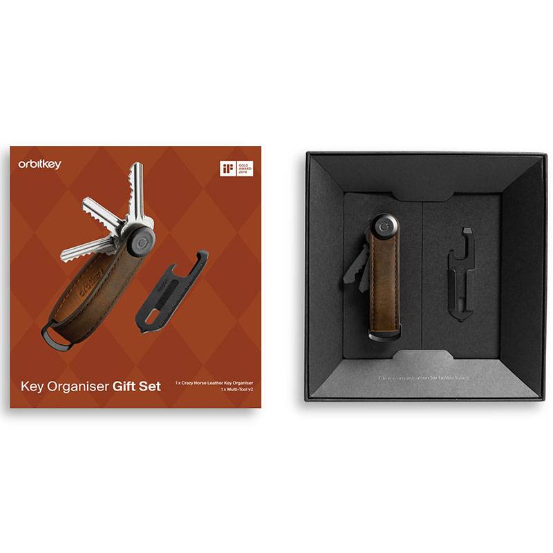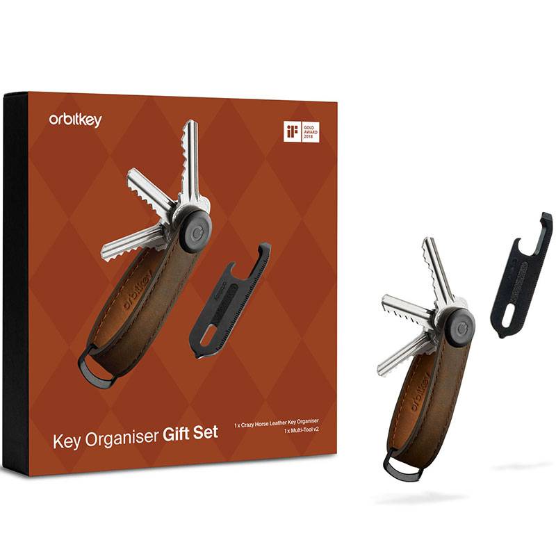 Orbitkey Key Organiser Set - Crazy Horse Oak Brown nyckelring och Multitool V2