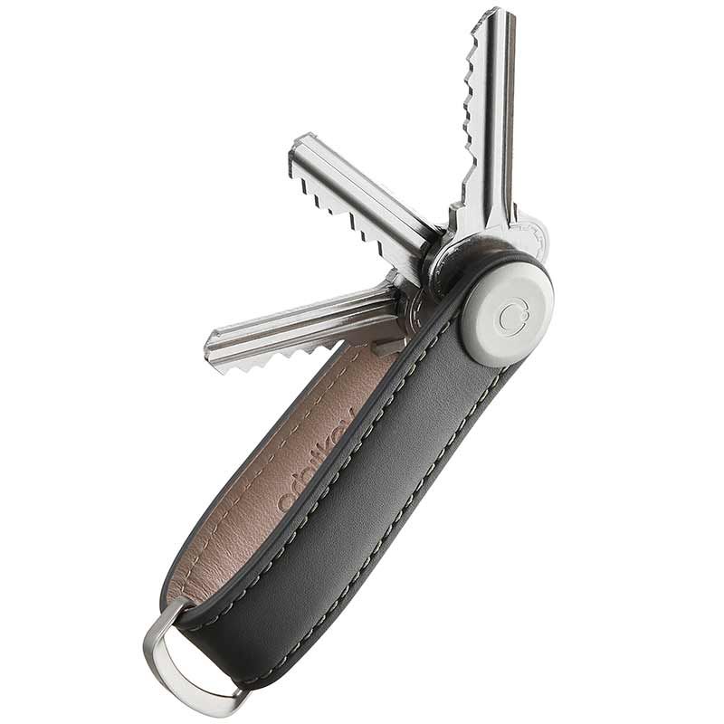 En mycket elegant och praktisk nyckelring från Orbitkey, tillverkad av noggrant utvalt genuint läder och delikata metalldetaljer. Kontrasterande söm.
