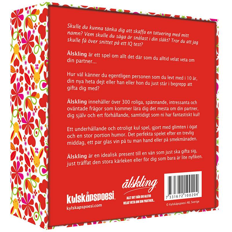 Spelet Älskling innehåller över 300 roliga, spännande, intressanta och oväntade frågor som kommer lära dig det mesta om din partner, dig själv och ert förhållande samtidigt som ni har fantastiskt kul!
