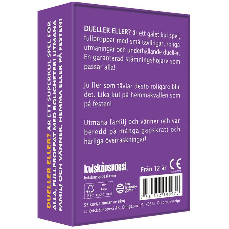 DUELLER ELLER? är ett galet kul spel, fullproppat med små tävlingar, roliga utmaningar och underhållande dueller. En garanterad stämningshöjare som passar alla!