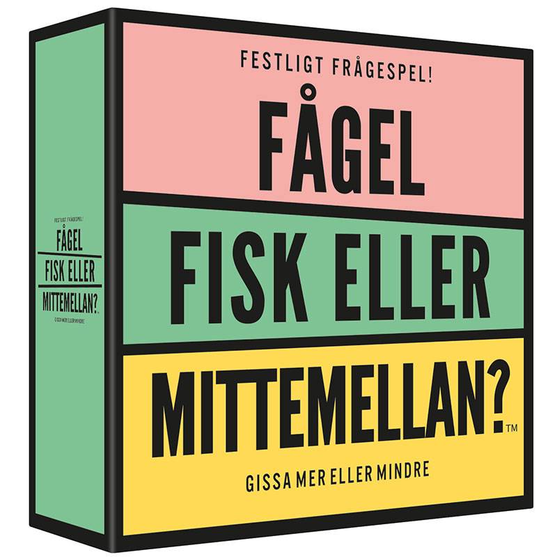 Fågel, fisk eller mittemellan är spelet för dig som älskar roliga utmaningar blandat med knasiga fakta och smarta chansningar. Ett fartfyllt och kul spel med fler än 300 superintressanta men nästan omöjliga frågor om sånt du absolut inte fick lära dig i skolan. Här gäller det istället att gissa bäst eller placera sig rätt i förhållande till de andras gissningar.